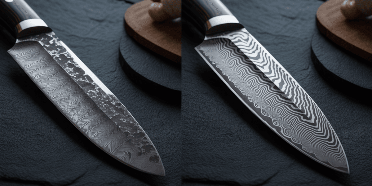 | Происхождение узора | Внутренняя кристаллическая структура (дендриты карбидов) | Механическое наслоение и протравливание разных сталей |